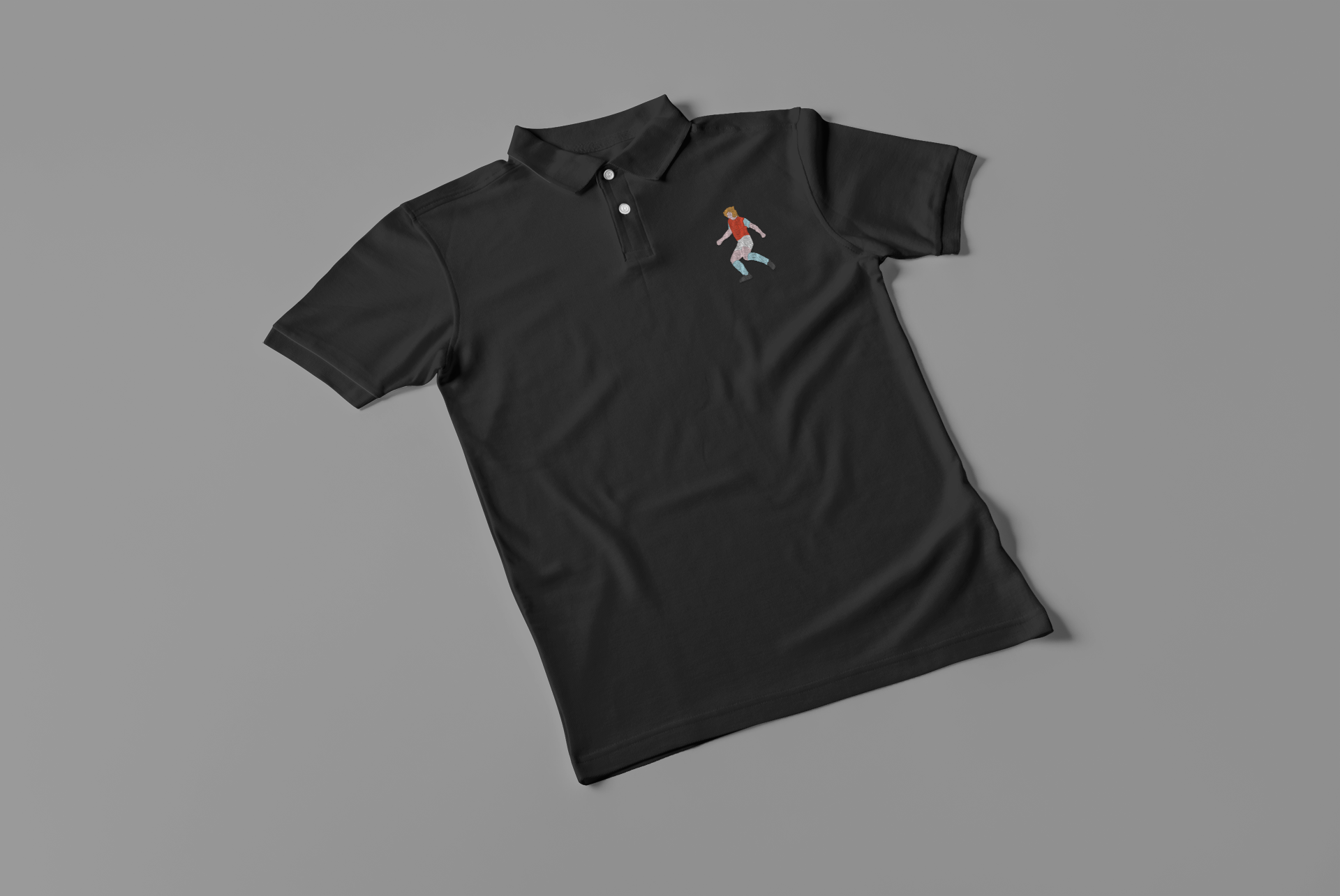 Custom designed Billy Bonds image fully embroidered onto a high quality polo