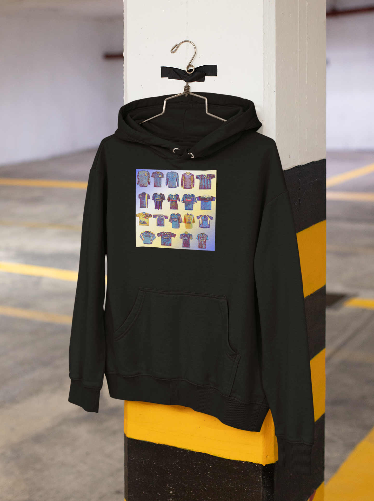 Cardiff City Kits inspired design printed with high quality inks on premium clothing including T-shirts, Sweatshirts and Hoodies