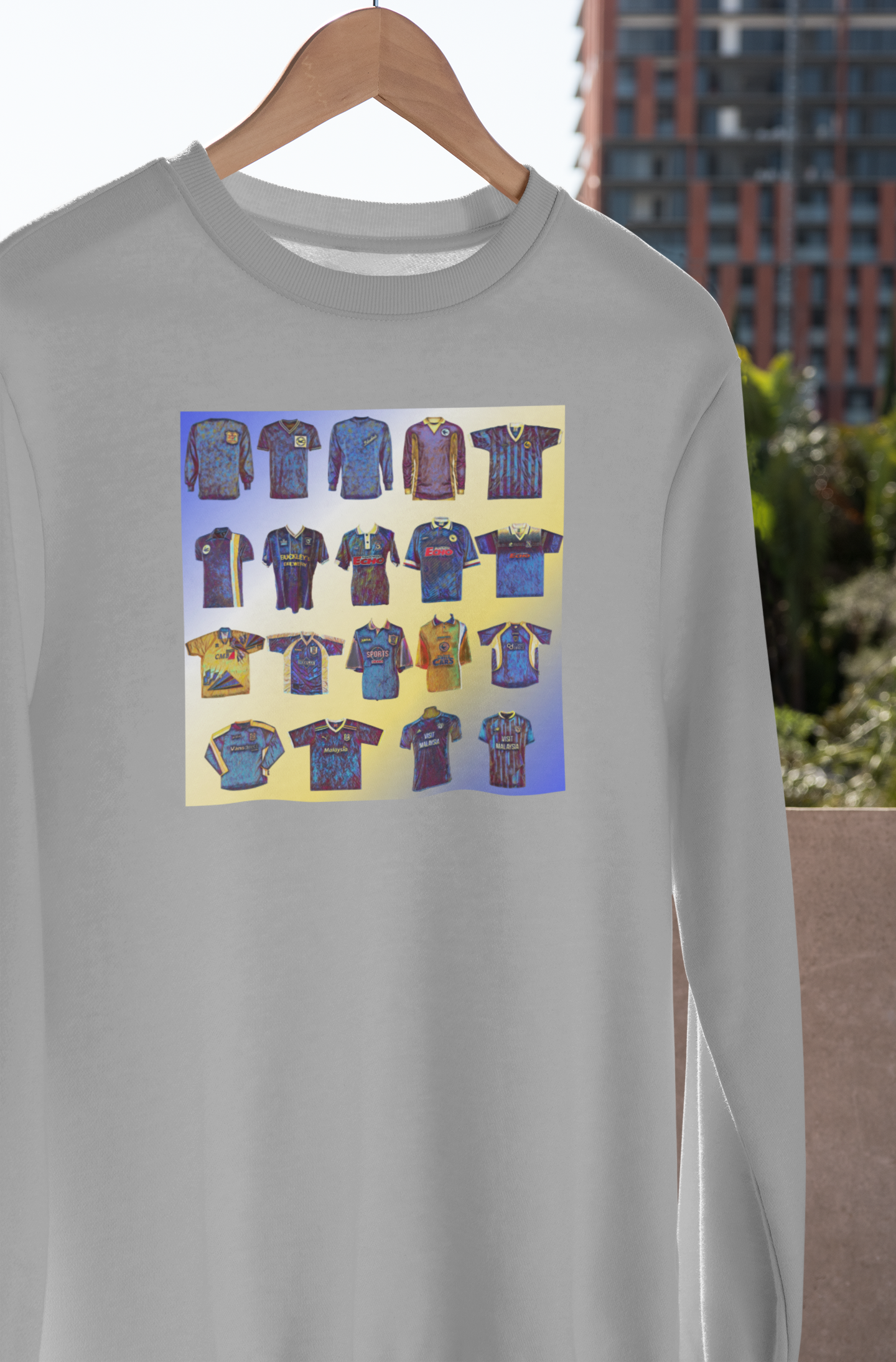 Cardiff City Kits inspired design printed with high quality inks on premium clothing including T-shirts, Sweatshirts and Hoodies