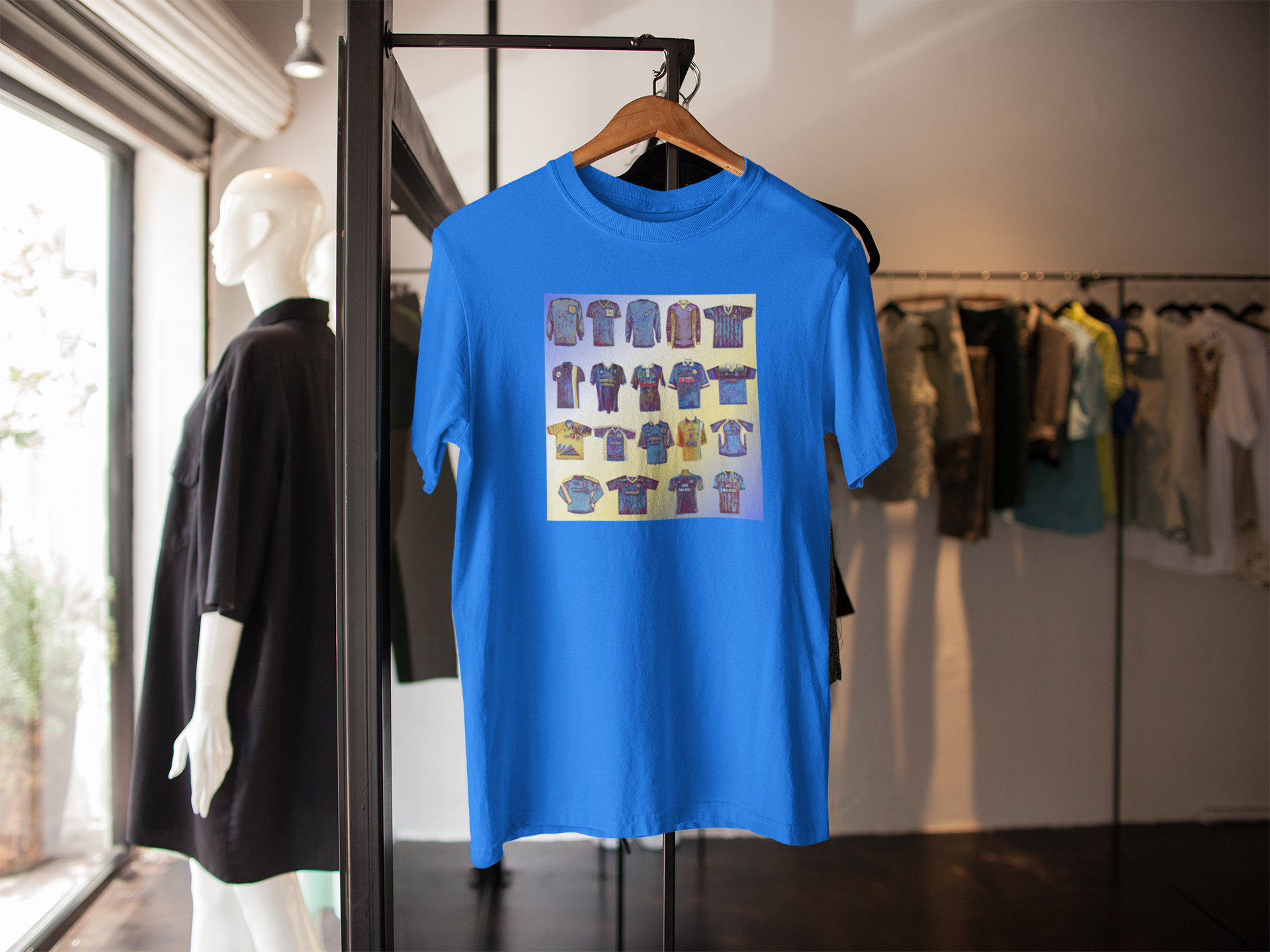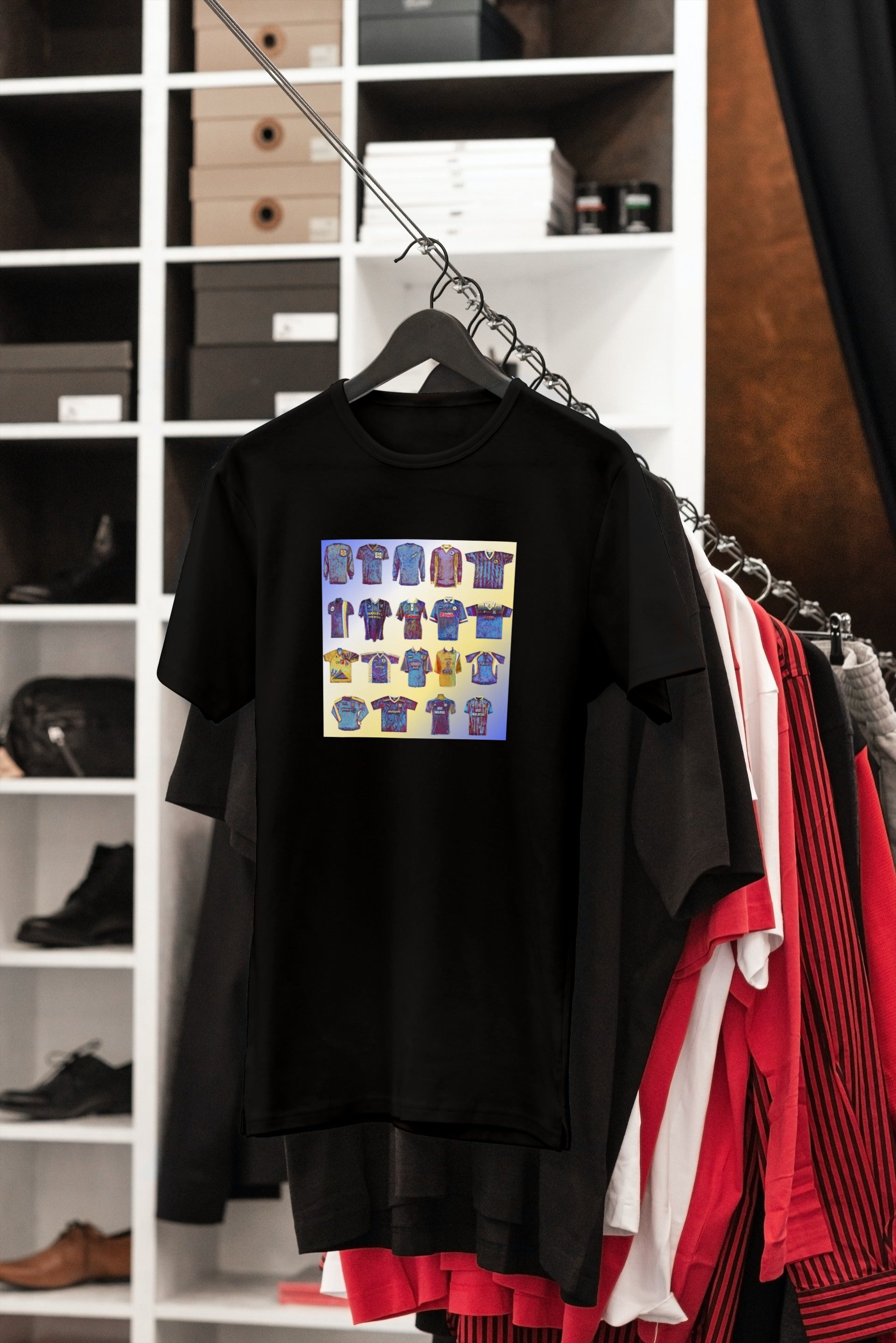Cardiff City Kits inspired design printed with high quality inks on premium clothing including T-shirts, Sweatshirts and Hoodies
