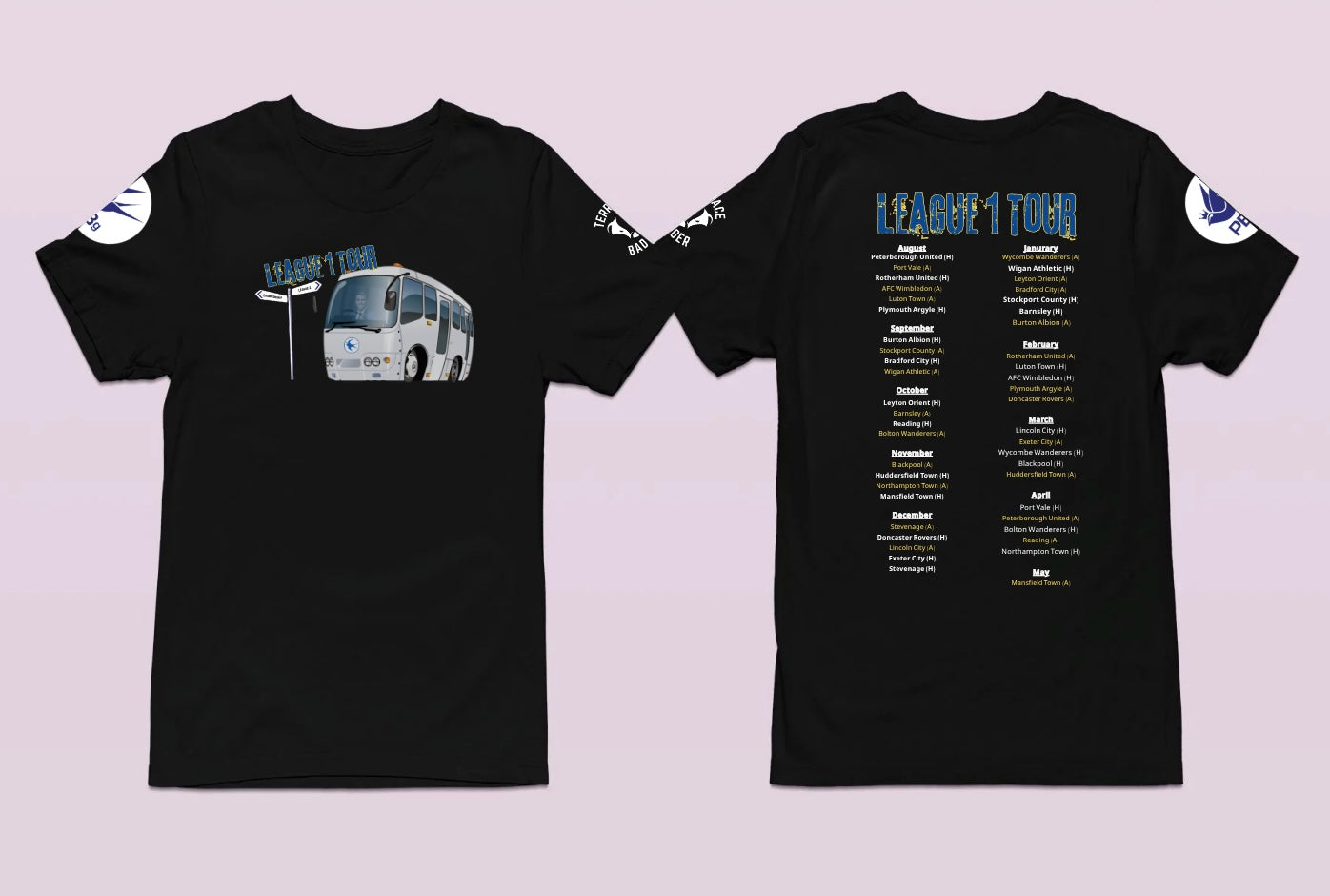 Cardiff City league 1 tour full fixture list in partnership with Premier Bluebirds Group inspired design printed with high quality inks on a premium t-shirt that is