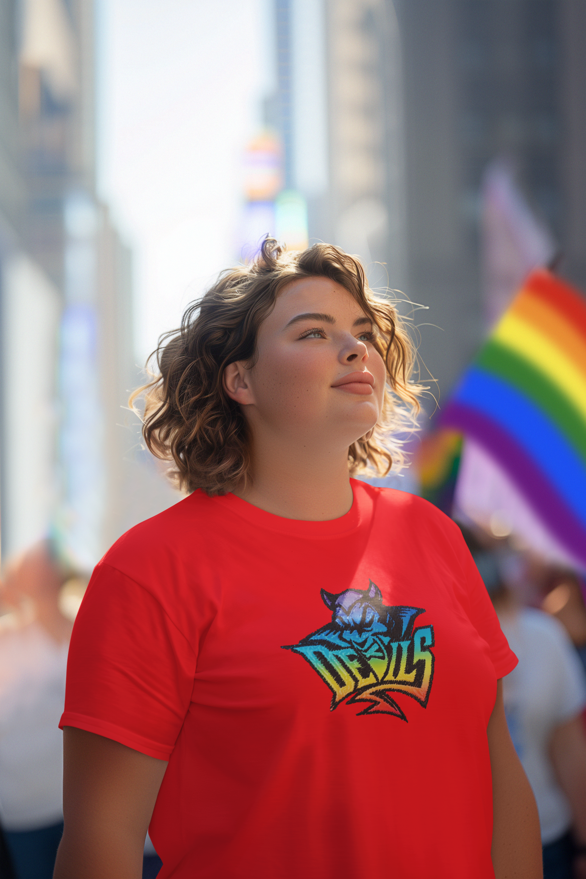 Cardiff Devils Pride/LBGTQ+ inspired design printed with high quality inks on a premium t-shirt that is