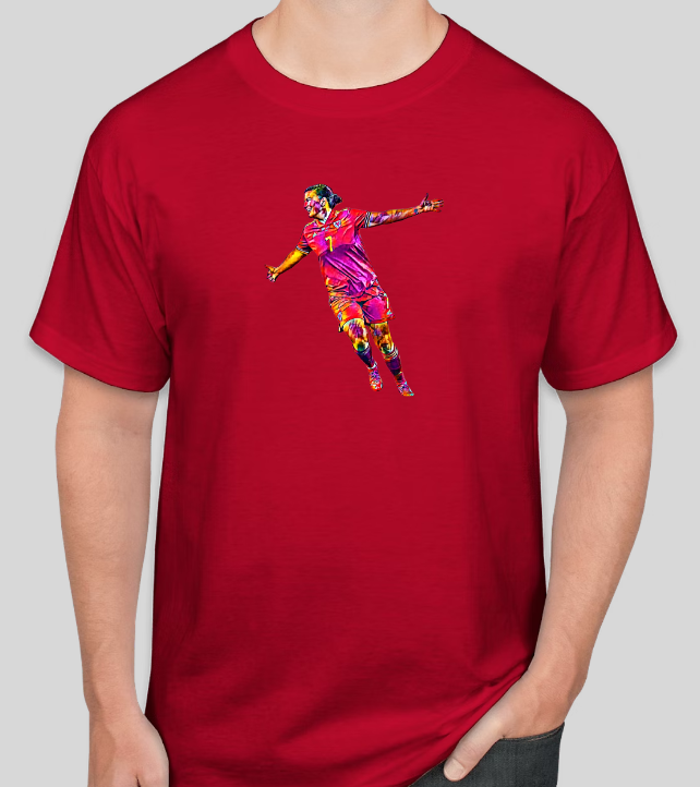 Wales legend Helen Ward inspired design printed with vinyl on a red t-shirt that is