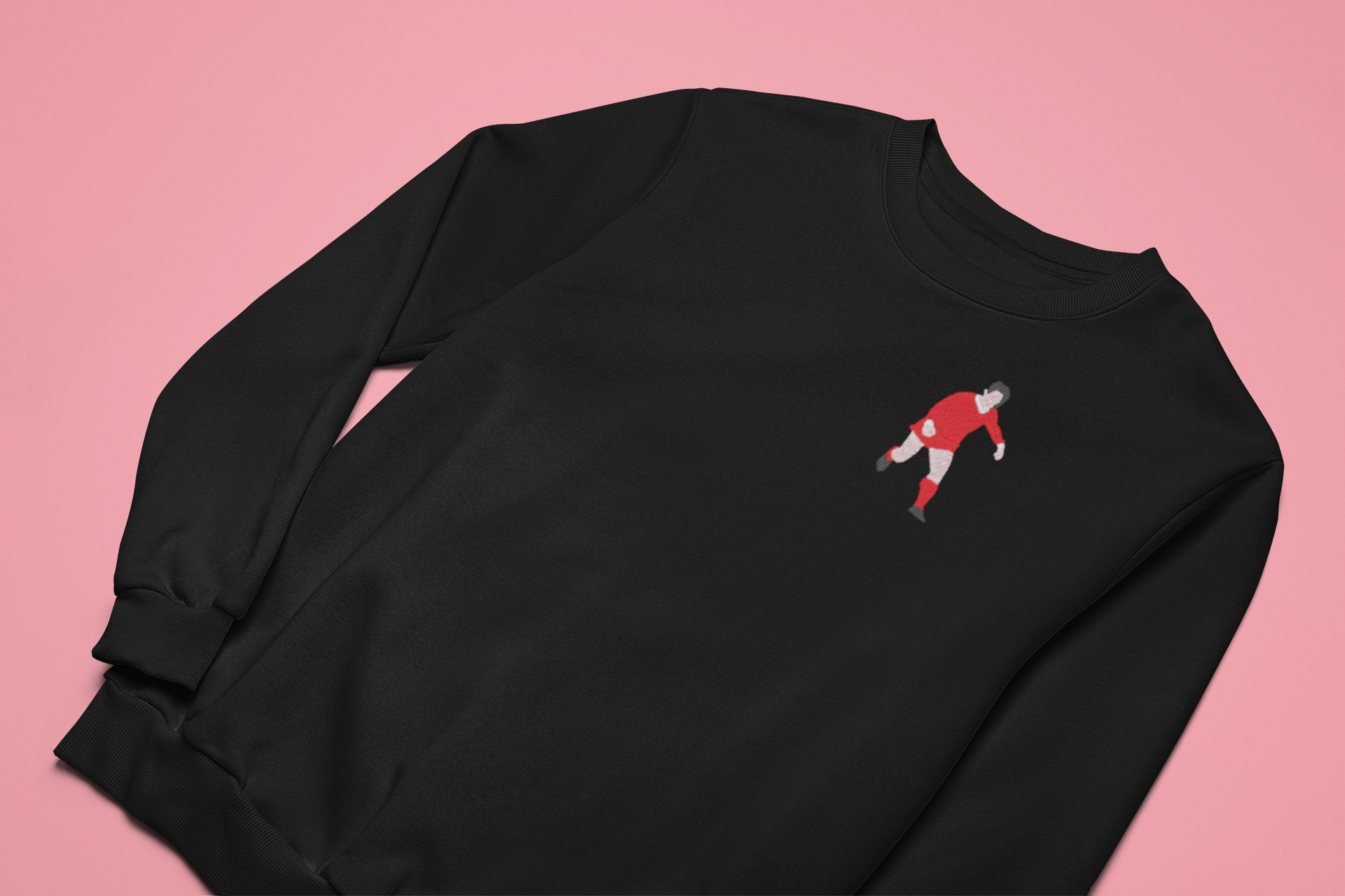 Custom designed Kenny Dalglish image fully embroidered onto a high quality hoodie