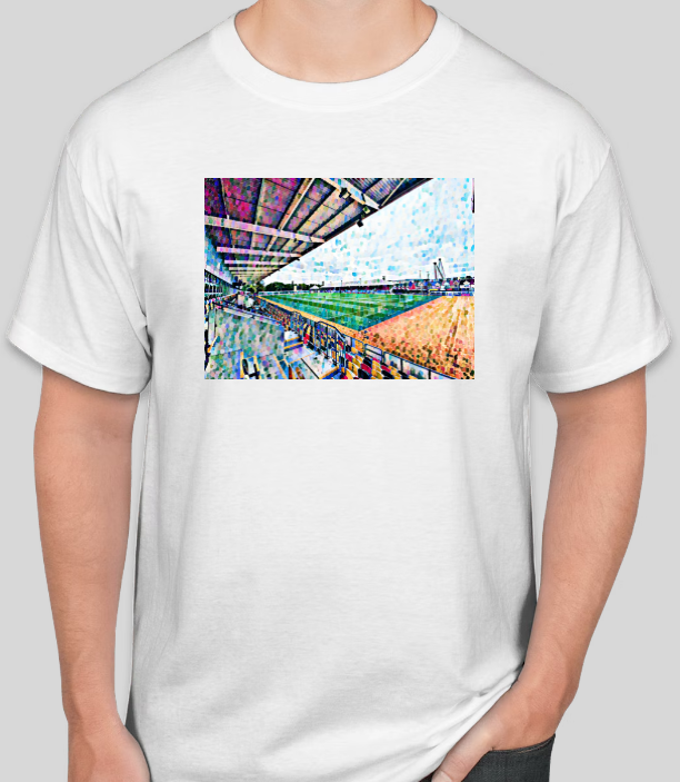 Newport County Stadiums inspired design printed with vinyl on a t-shirt or jumper that is