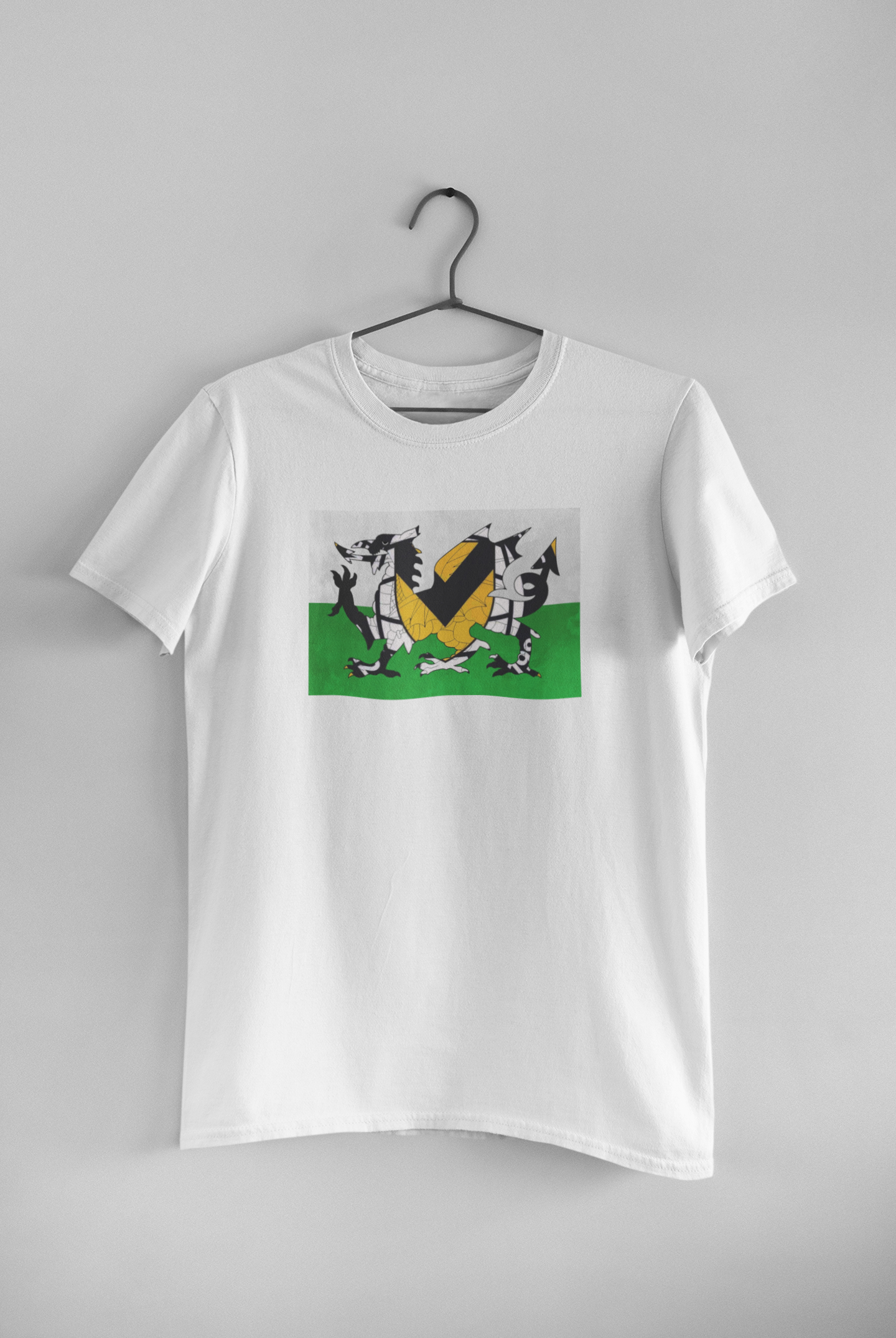Newport County Wales Flag inspired design printed with the highest quality inks on a t-shirt that is