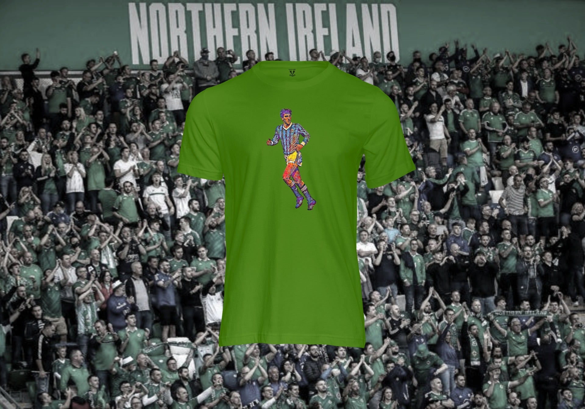 Northern Ireland legend inspired design printed with high quality inks on a premium t-shirt that is