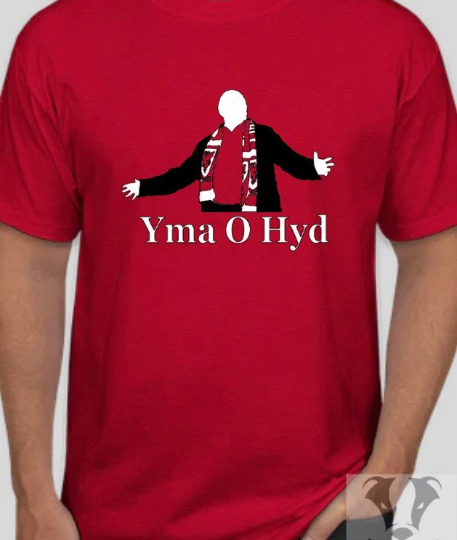 Dafydd Iawn Yma o Hyd inspired design printed with vinyl on a t-shirt that is