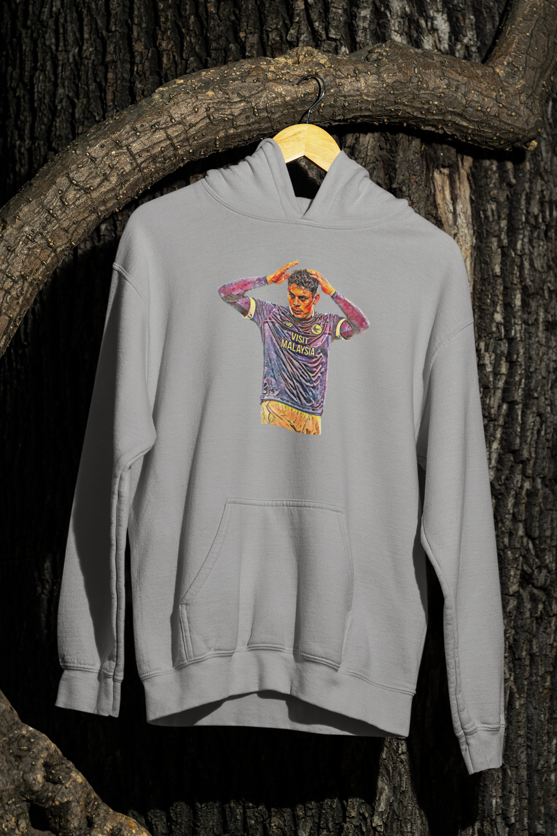 Cardiff City player printed onto a high quality hoodie